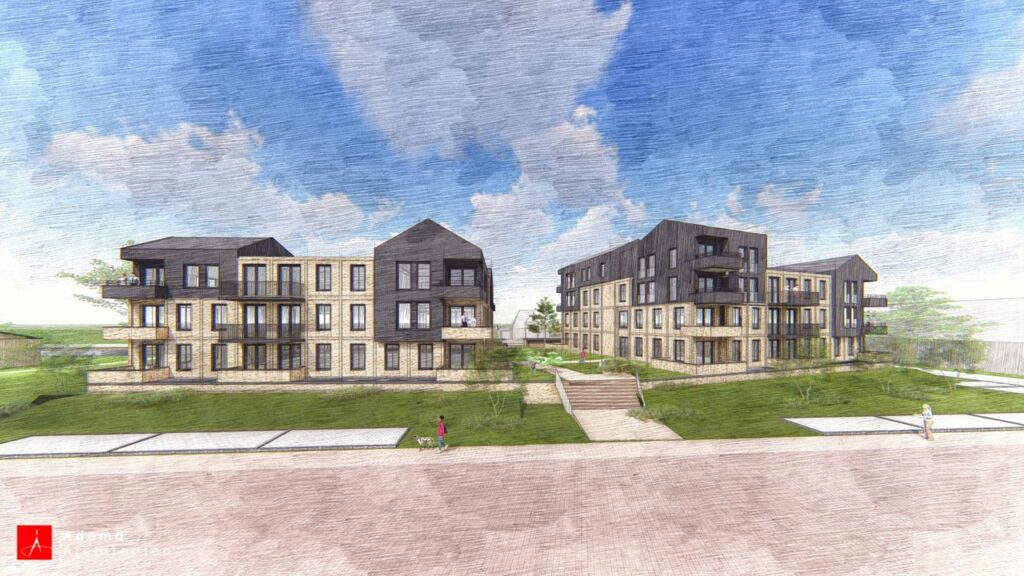De plannen zijn om 2 losse gebouwen te ontwikkelen met in totaal 38 appartementen erin en parkeergelegenheid ondergronds.